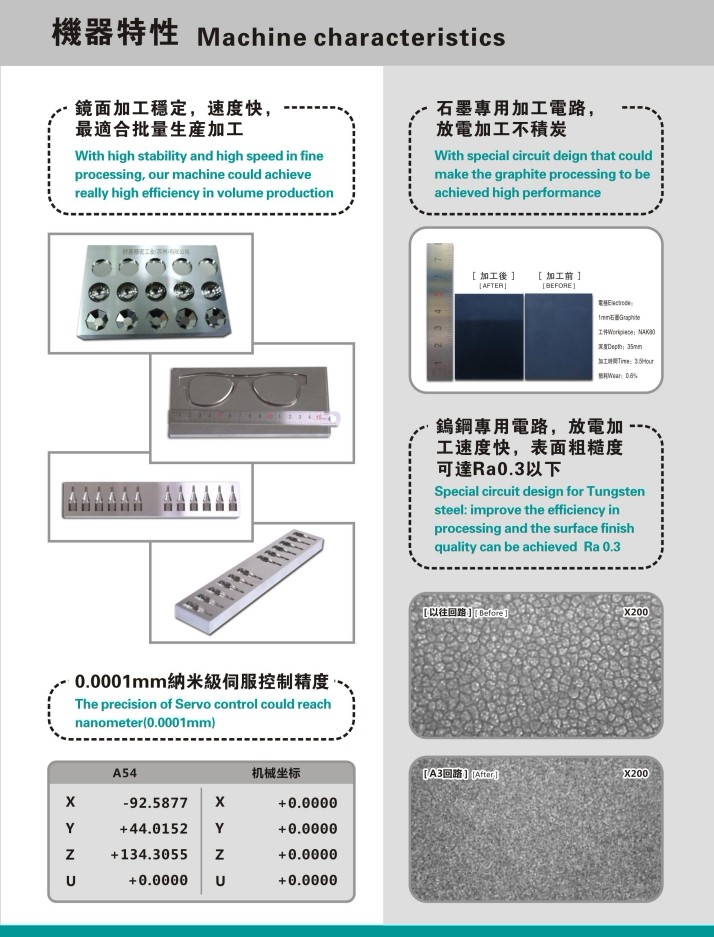 支持触控显示面板、USB 和网络通信功能 石墨专用加工电路,加工不积炭 镜面加工快速稳定,适合批量生产